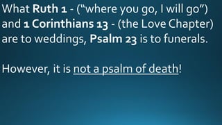Psalm 23 24 The earth and its fullness are the Lords. The 23 rd Psalm is the extension of His throne of grace to every believer.